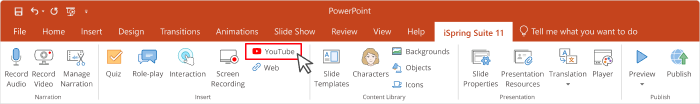 W programie iSpring Suite możesz dodać klip z YouTube do prezentacji i przekonwertować ją na format online. Ponadto możesz także tworzyć wszechstronne treści e-learningowe. Jest to najlepiej oceniany program autorski, który umożliwia tworzenie kursów online, quizów, samouczków wideo, odgrywania ról i interakcji e-learningowych. I nie jest wymagane żadne doświadczenie ani umiejętności techniczne, wystarczy mieć komputer.